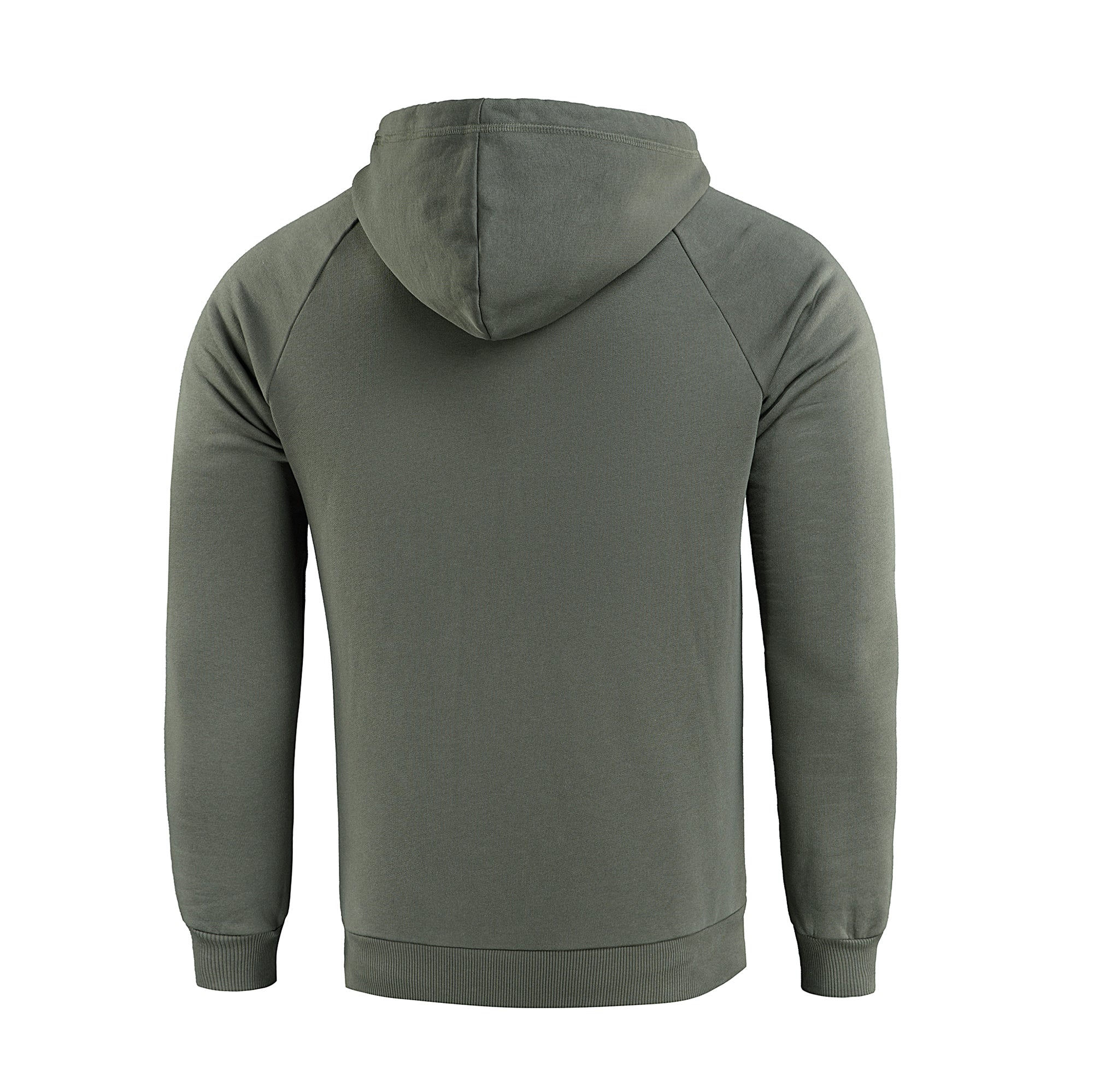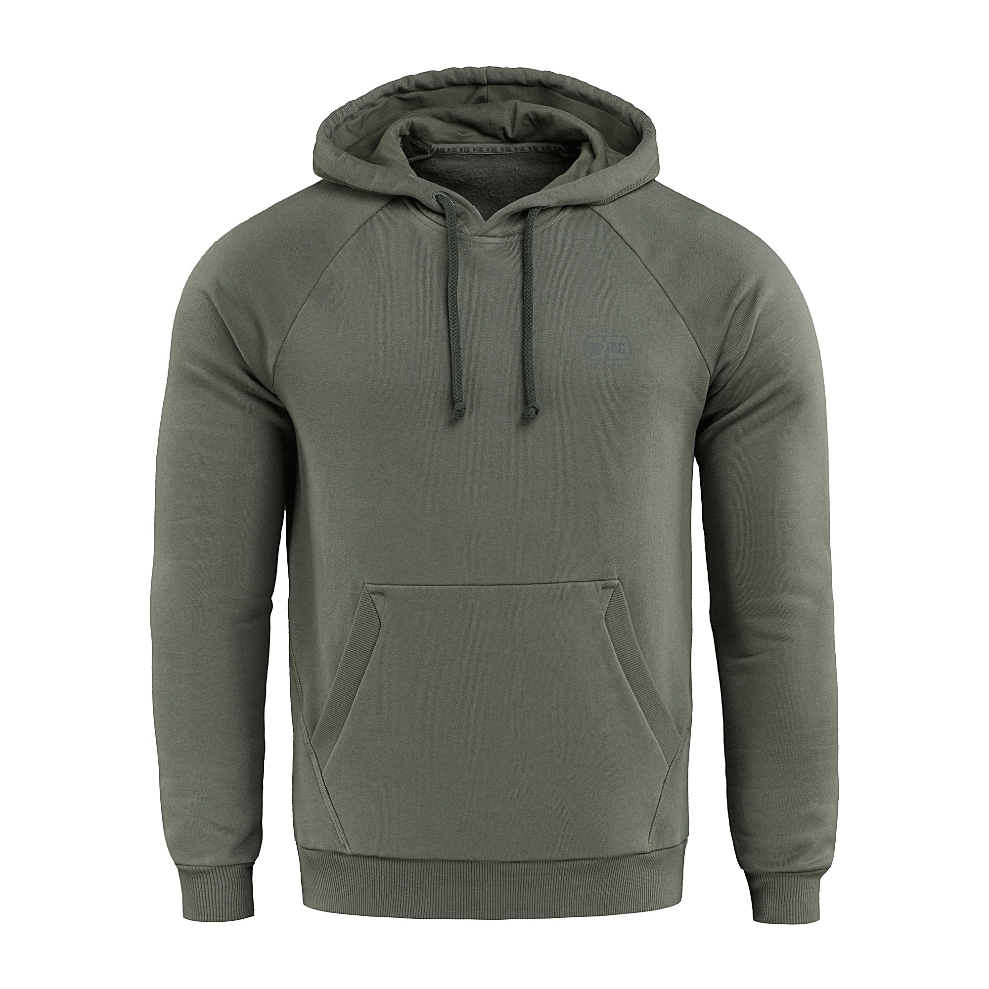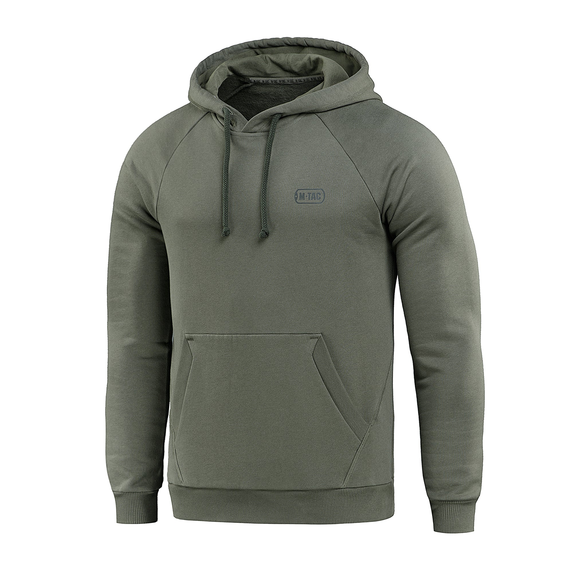 This hoodie is constructed from 100% cotton, which is comfortable, breathable, and easy to care for. The special raglan sleeve cut creates a unique shoulder shape, resulting in a stylish, rounded silhouette. The loose fit of the hoodie does not restrict movement during physical activity. The kangaroo pocket features a distinctive trapezoid shape, perfect for warming your hands. The comfortable, soft hood provides excellent protection from wind and bad weather. Ribbed knit fabric on the cuffs and hem helps them retain their shape and prevents cold air from entering the garment.