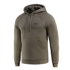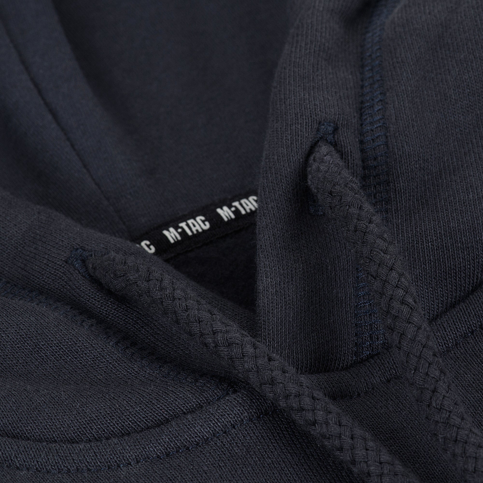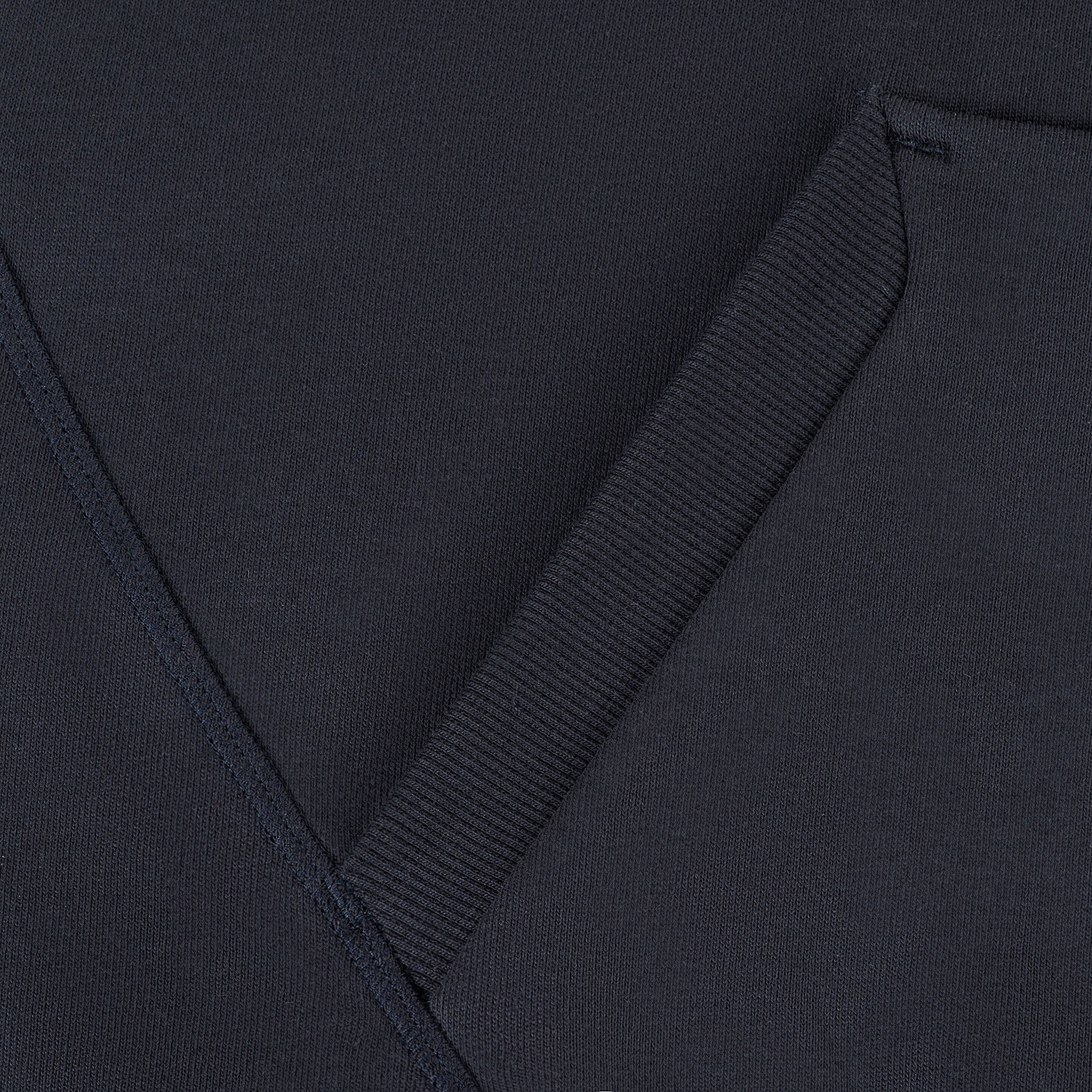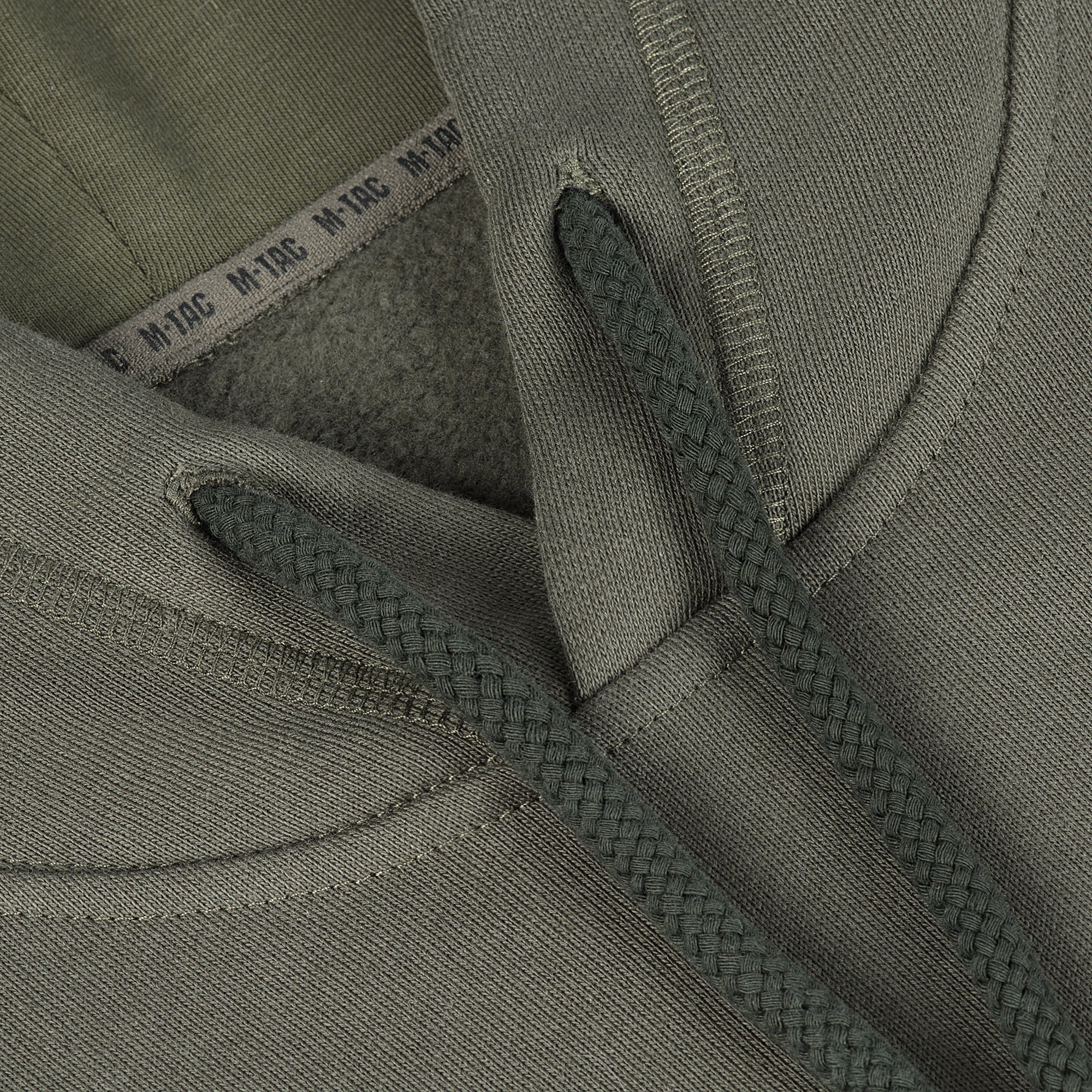 This hoodie is constructed from 100% cotton, which is comfortable, breathable, and easy to care for. The special raglan sleeve cut creates a unique shoulder shape, resulting in a stylish, rounded silhouette. The loose fit of the hoodie does not restrict movement during physical activity. The kangaroo pocket features a distinctive trapezoid shape, perfect for warming your hands. The comfortable, soft hood provides excellent protection from wind and bad weather. Ribbed knit fabric on the cuffs and hem helps them retain their shape and prevents cold air from entering the garment.