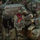 The patch is made of Cordura 500D—an extremely durable material—with a refined look achieved through colorful machine embroidery. It attaches easily to gear using hook-and-loop (Velcro).