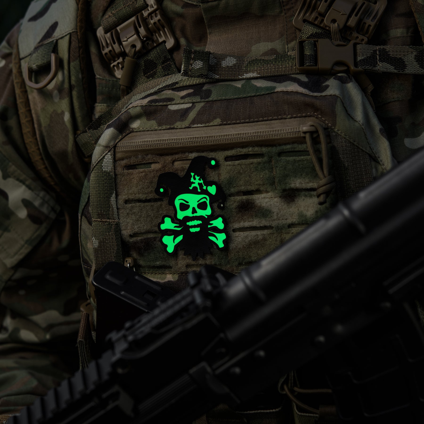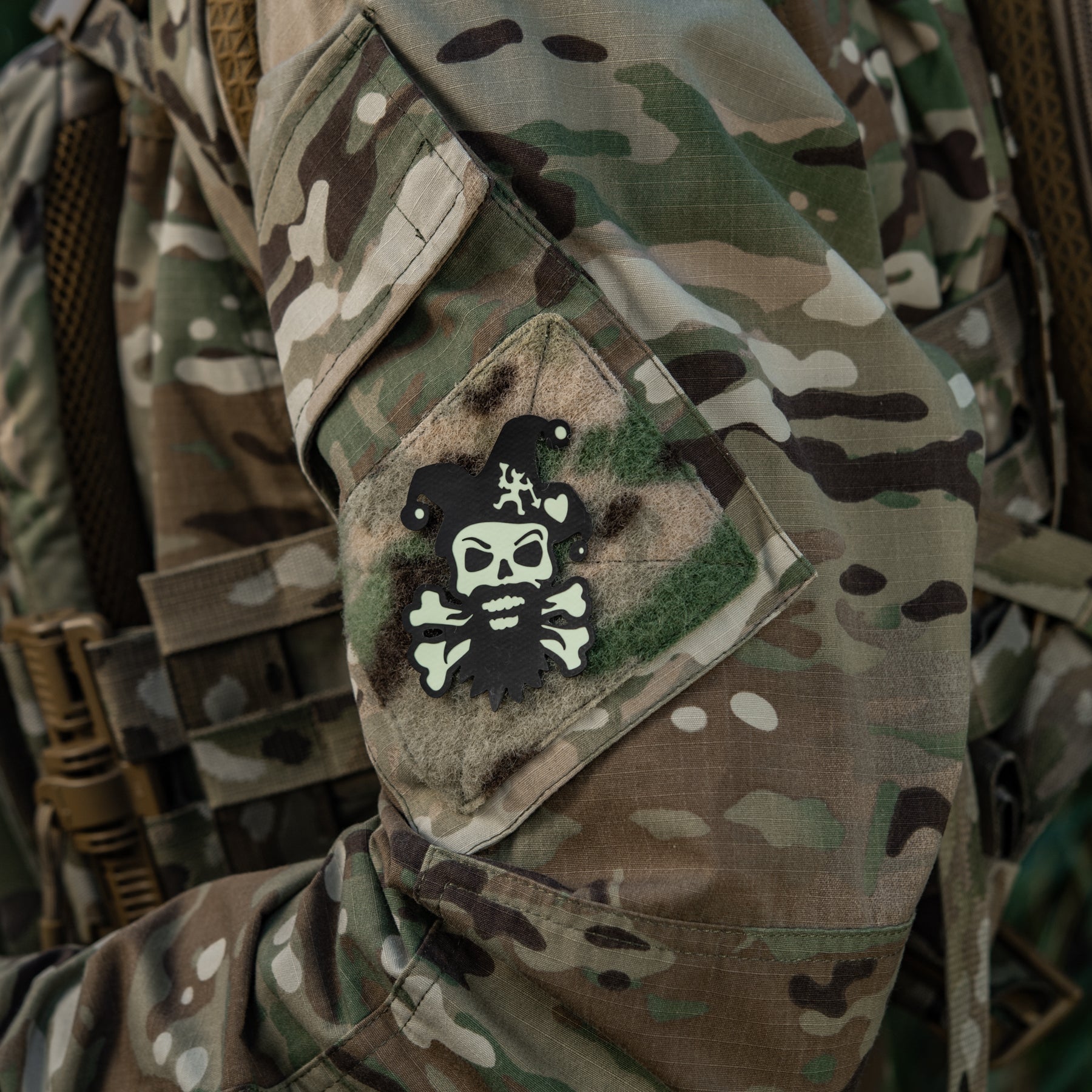 This patch is designed to strike fear into enemies, hinting at their inevitable doom with a smile. The patch is made of a special film with light-accumulating elements (Glow in the Dark) that glow in the dark and attract attention. It attaches to clothing, bags, backpacks, or gear using hook-and-loop (Velcro).