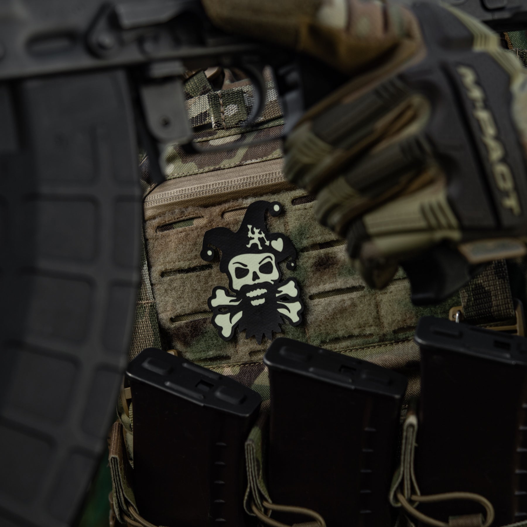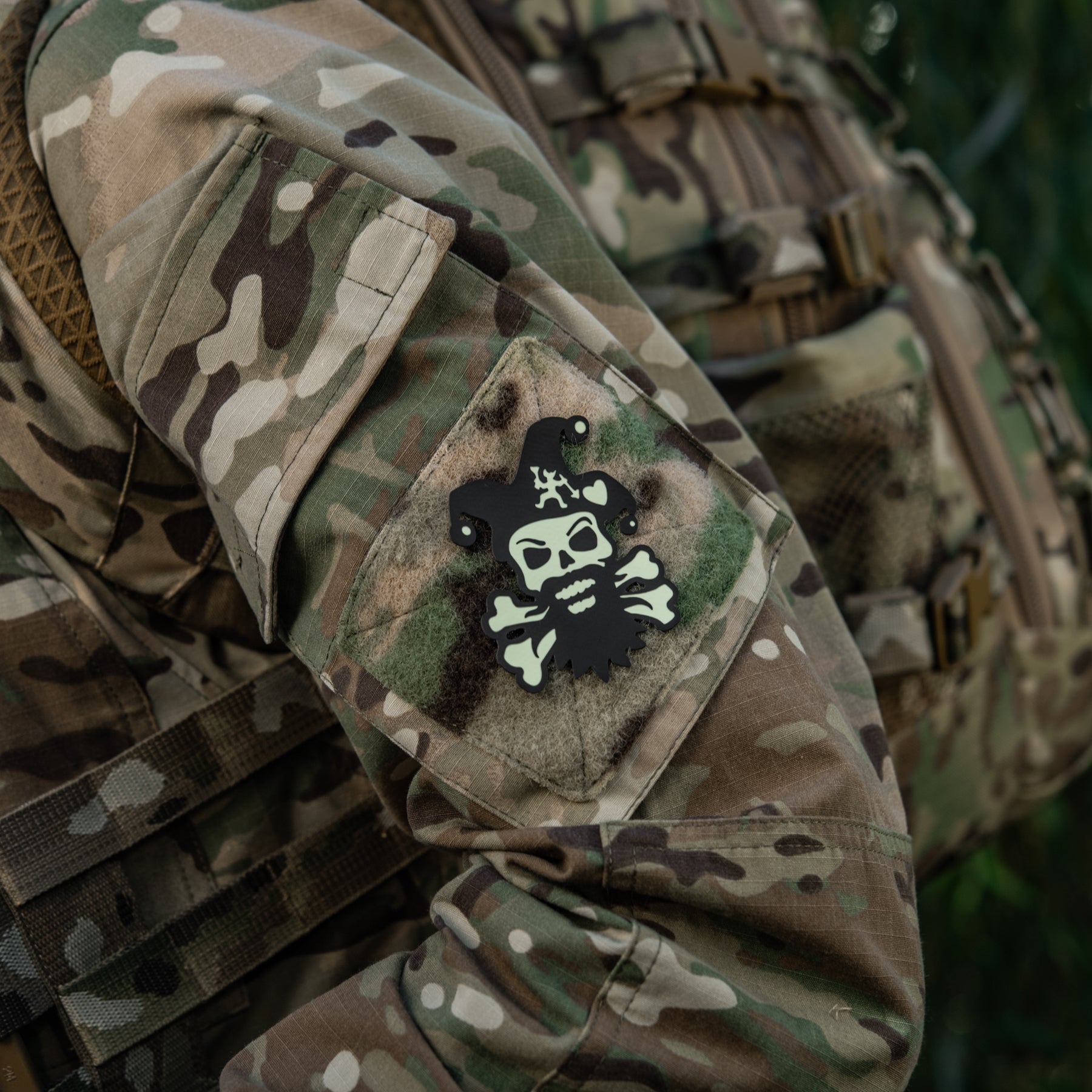The patch depicts a stylized skull wearing a jester's hat and a black beard. It ironically smiles at its opponent, signaling inevitable defeat. Noticeable on the jester's hat is the famous flag of Edward Teach, known as Blackbeard. He was the most notorious rogue of his time, the legendary "terror of the seas," instilling fear in everyone he encountered.