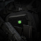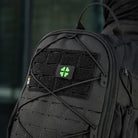 The patch consists of two parts, allowing it to be securely attached to a bag, backpack, plate carrier, or any gear with a MOLLE interface using a Velcro fastening system.