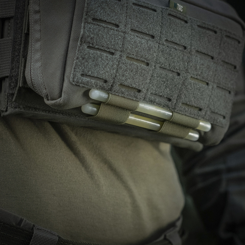 At the bottom, an elastic loop is added for carrying a chem-light or pen.