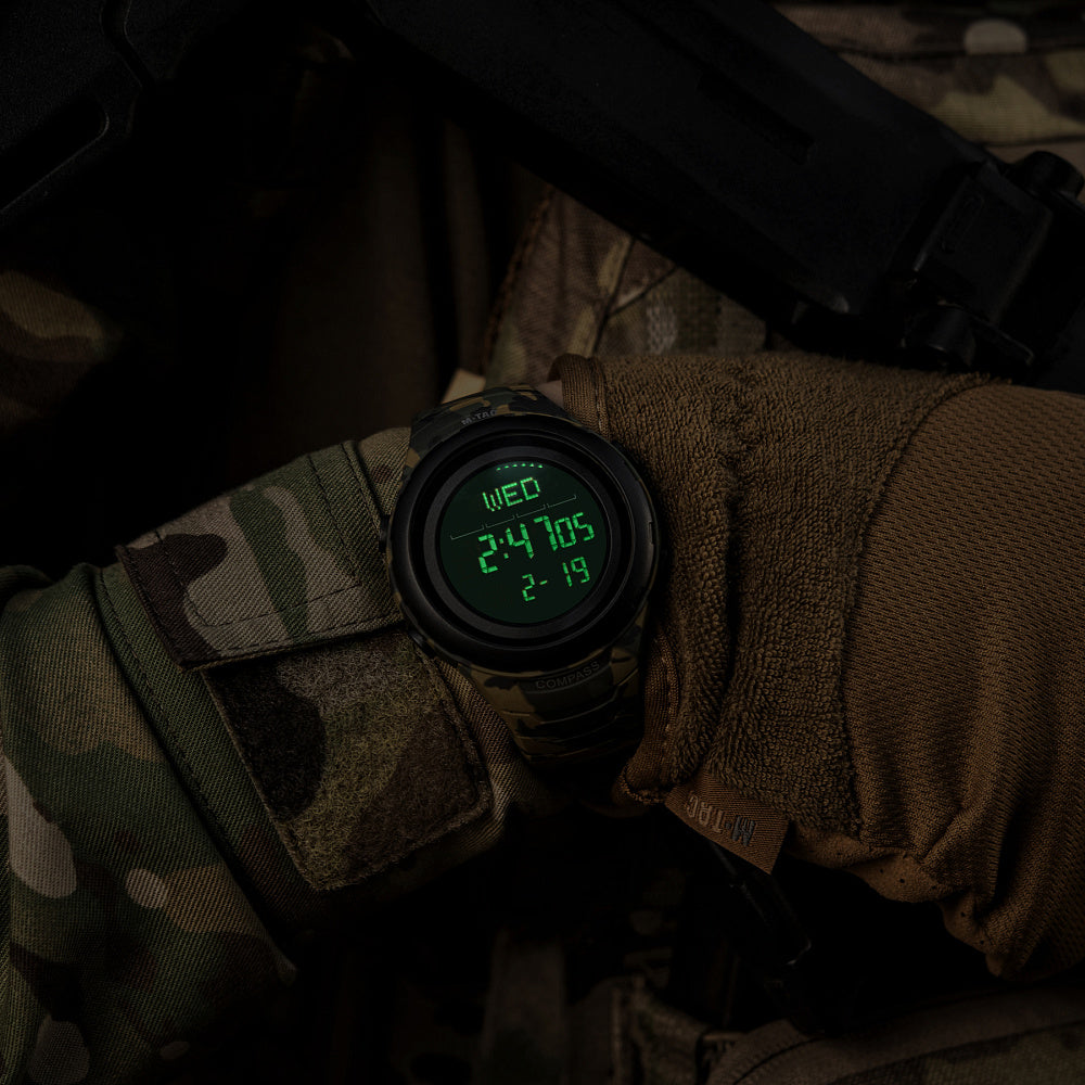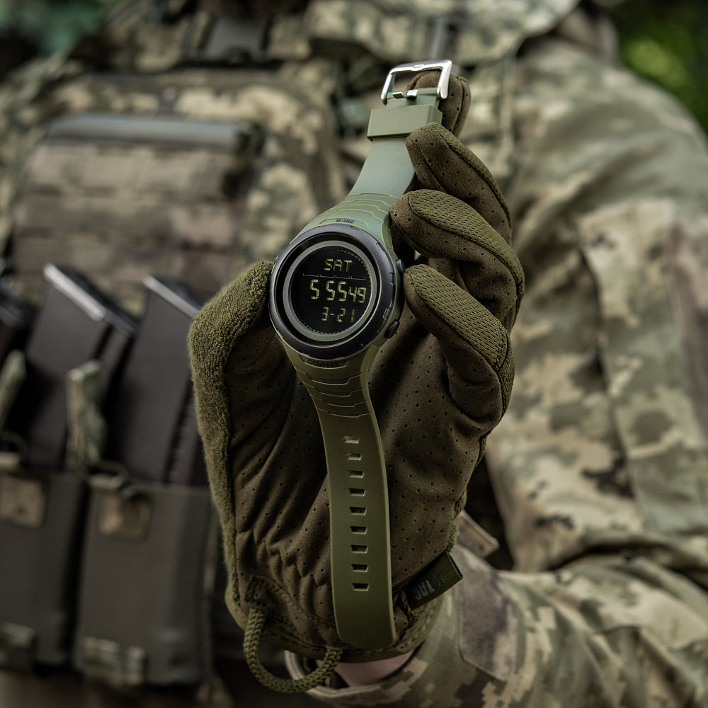 M-Tac has released a new tactical watch, model 2166, which will be a valuable addition to your gear. This model offers a wide range of features, including a compass, LED backlight, stopwatch, timer, and alarm clock. You can find more information about its functions in the "Operating Instructions" that come with the watch. The watch case is made of ABS plastic, a durable and impact-resistant polymer known for its ability to withstand physical damage, moisture, and high temperatures.