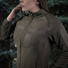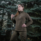 The Women Combat Fleece Polartec Jacket features two side pockets for convenient storage of essentials. Velcro panels are provided for attaching patches and identifiers, while the sleeve Velcro panels include additional slots for chemlights or small accessories. For improved durability, the egow areas are reinforced with inserts made of 98% nylon and 2% elastane.