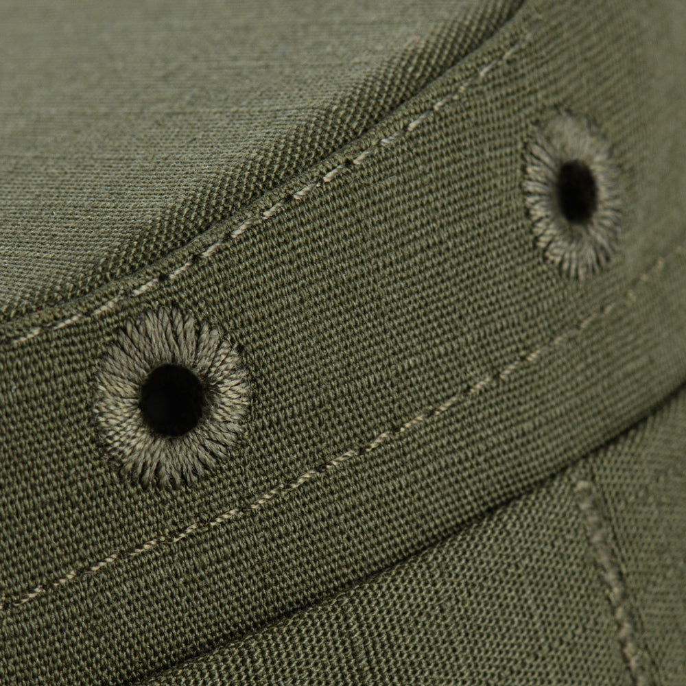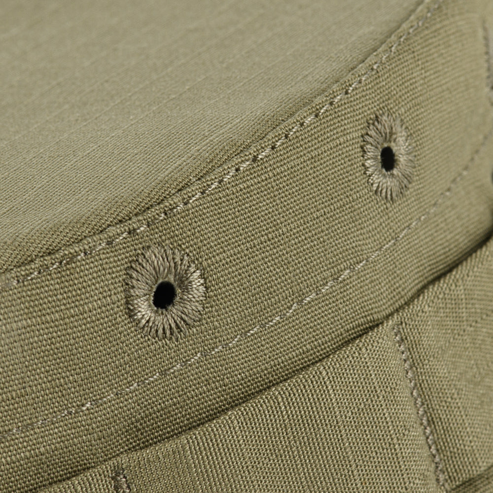 This second-generation boonie hat features a unique cut with short, semi-rigid brims that offer sun protection while remaining convenient for shooting. A MOLLE interface is sewn around the crown, allowing for the attachment of additional camouflage elements. The hat also includes a chin cord to keep it secure during strong wind gusts, as well as metal eyelets that provide excellent ventilation.