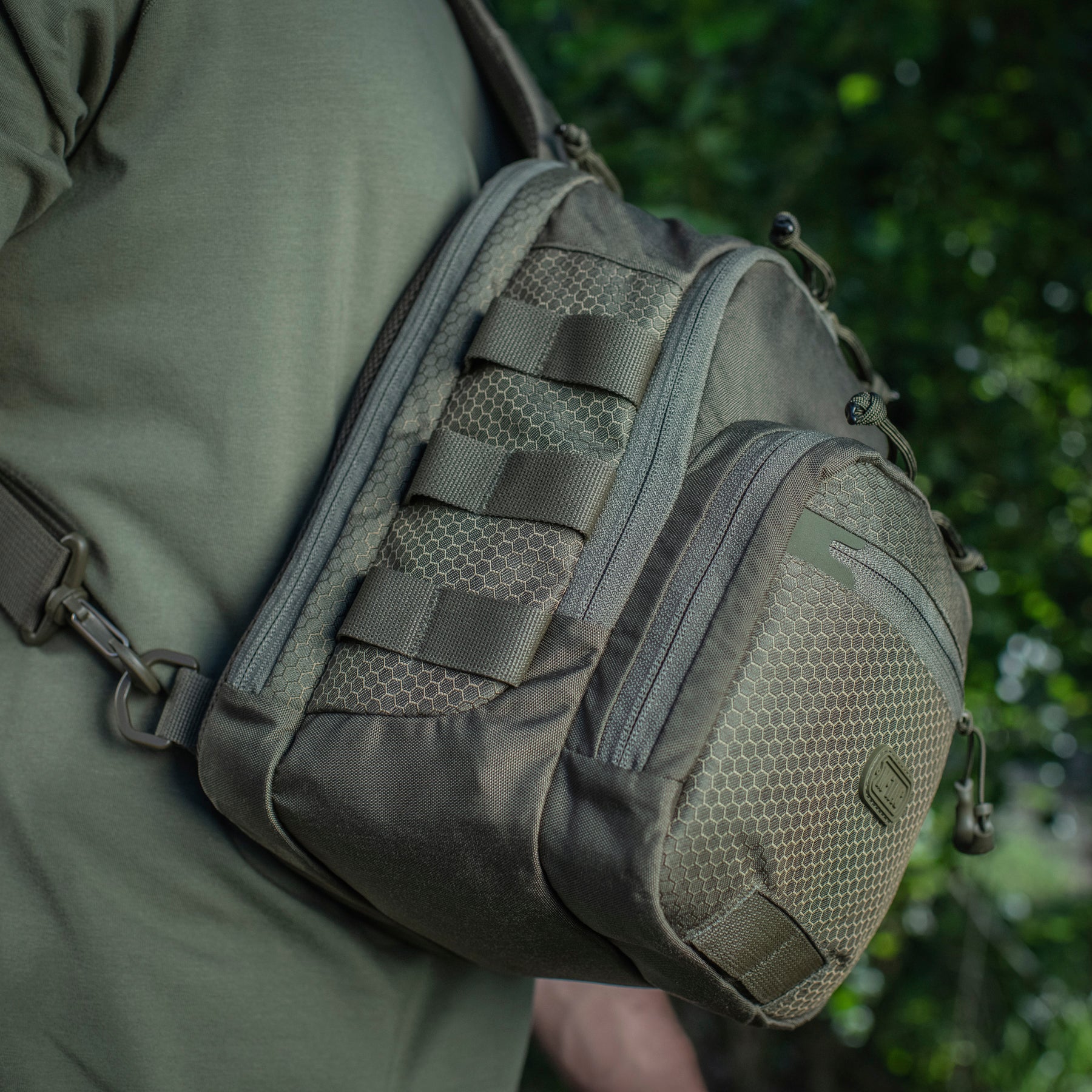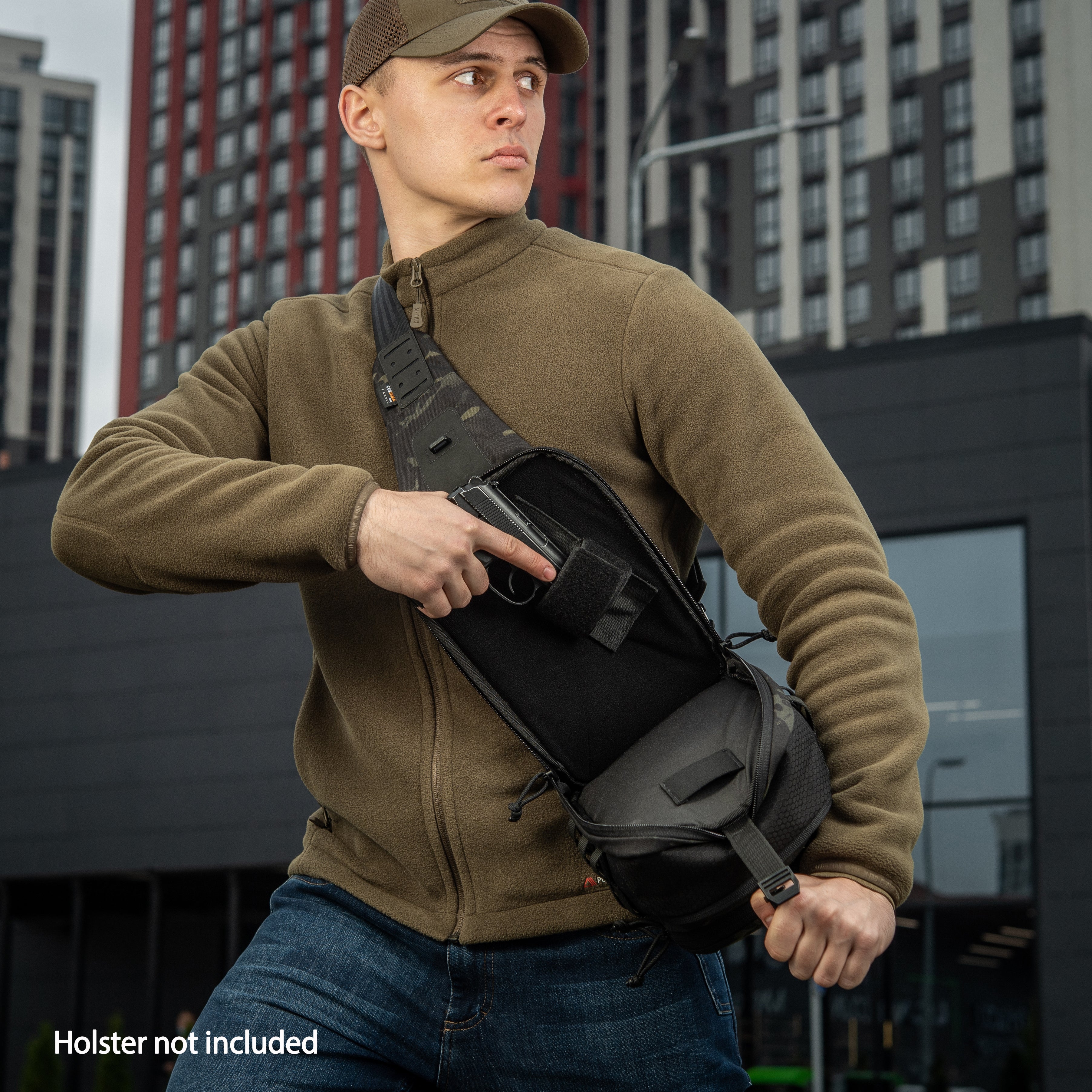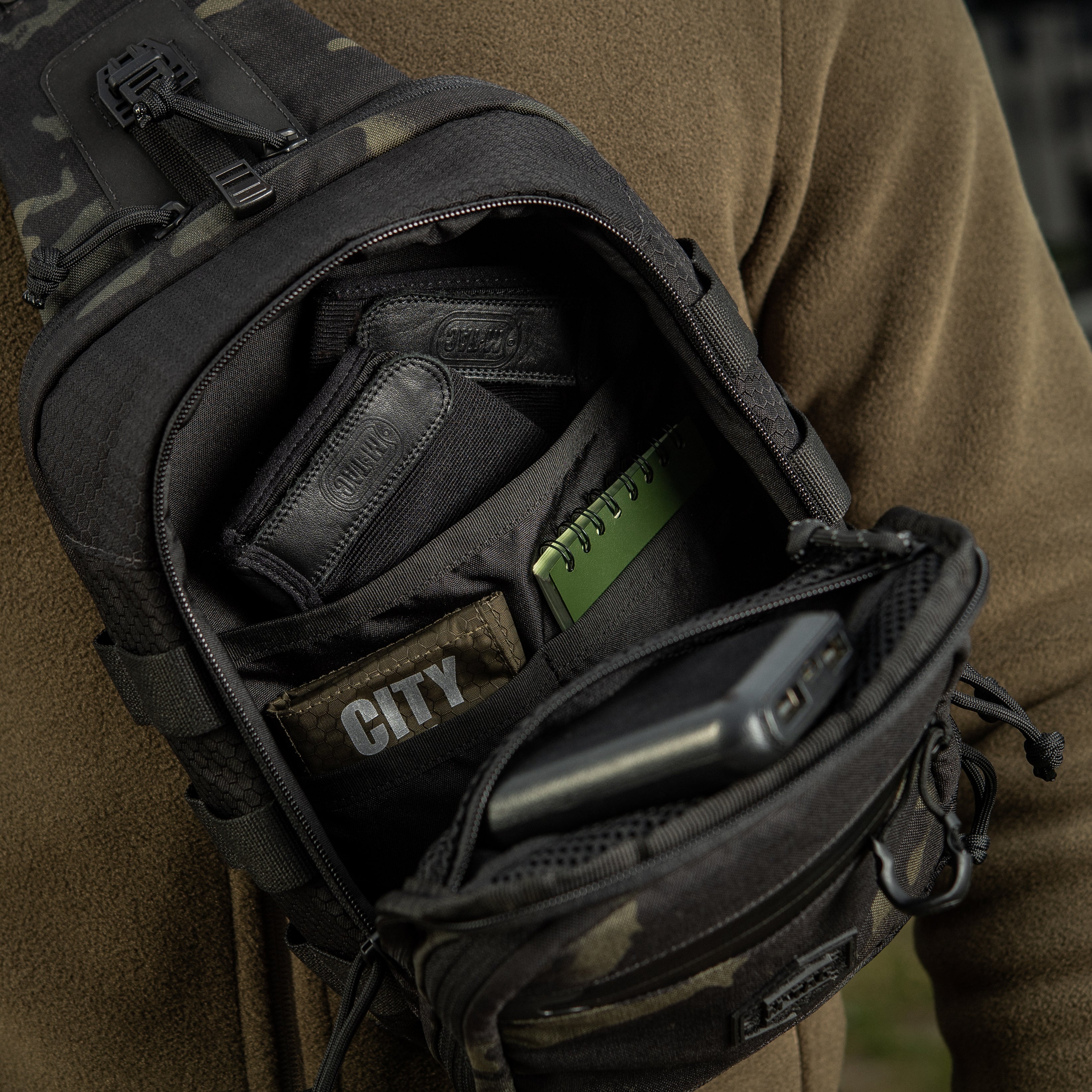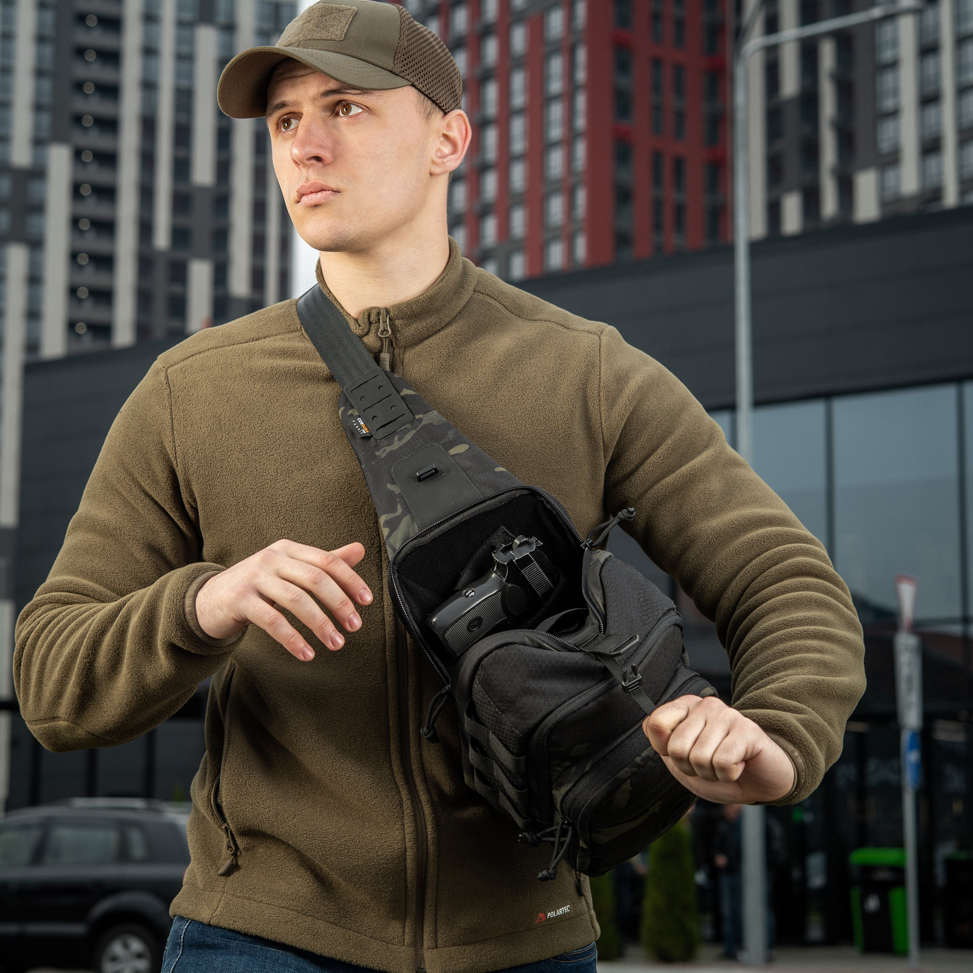 The M-TAC Cross Bag Elite is a successful combination of a bag and a small backpack. Accessories of this type are also called a sling pack, i.e. a backpack / bag for one shoulder. Crafted from Cordura 500D and Cordura Hex - abrasion-resistant and low-maintenance material. The bag is harnessed with a shoulder sling and a MOLLE interface to attach additional equipment. The bag consists of three main compartments to pack all your belongings with ease. The thoughtful arrangement of pockets and compartments will help you in any situation to place all your carry-on items as conveniently as possible. The bag also has compartment for concealed carrying weapons. The inside is lined with a loop panel, so you can attach a holster (not included) or modular organizer inserts.