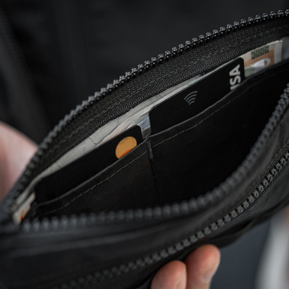 This wallet is made from the innovative X-PAC material. This material has become widely known among tactical gear manufacturers due to its successful combination of durability, light weight, and resistance to UV and water.