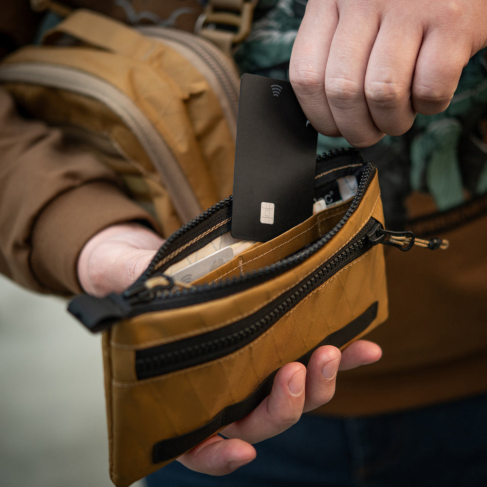 The front of the wallet features a pocket for placing coins, as well as a MOLLE system made from the innovative Hypalon material.