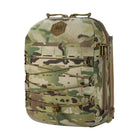 On the front, the pouch features a MOLLE panel and elastic shock cords that allow users to secure additional gear or compress the pouch when it's not fully loaded.
