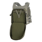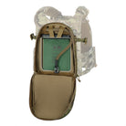 Inside the modular pouch, Velcro panels are located on both the front and back walls for attaching compatible inserts. Additionally, an internal compartment is provided for a hydration bladder, with an opening at the top for routing the hydration tube.
