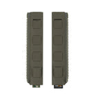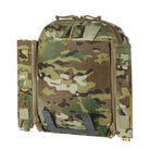 The pouch attaches to the MOLLE system on the back panel of a plate carrier (or any other gear with a compatible MOLLE interface). This is achieved via the extended rear straps of the pouch, which are threaded through the MOLLE system of the equipment.