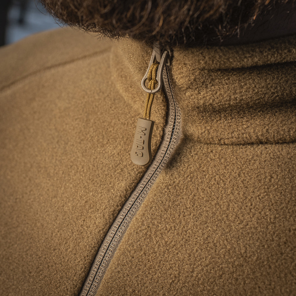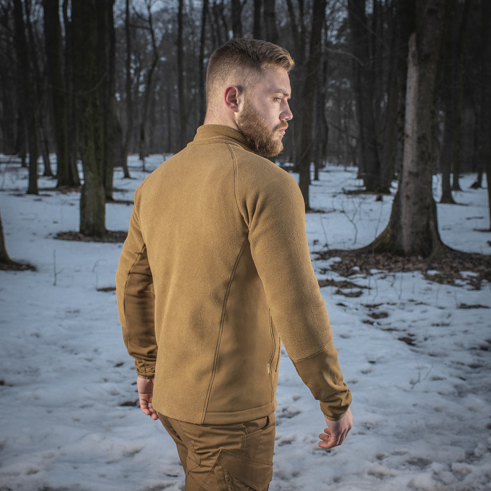 This Polartec fleece jacket aimed to combine modern technology with urban practicality. Sewn from Polartec 200 Series fleece. It traps the heat to keep you warm, retaining breathability to prevent sweating and irritation. Tecnostretch® fleece inserts were added to the sleeves for extra freedom of movement. These inserts also prevent deformation and provide additional durability from friction. A great addition to your casual outfit, or tactical uniform.