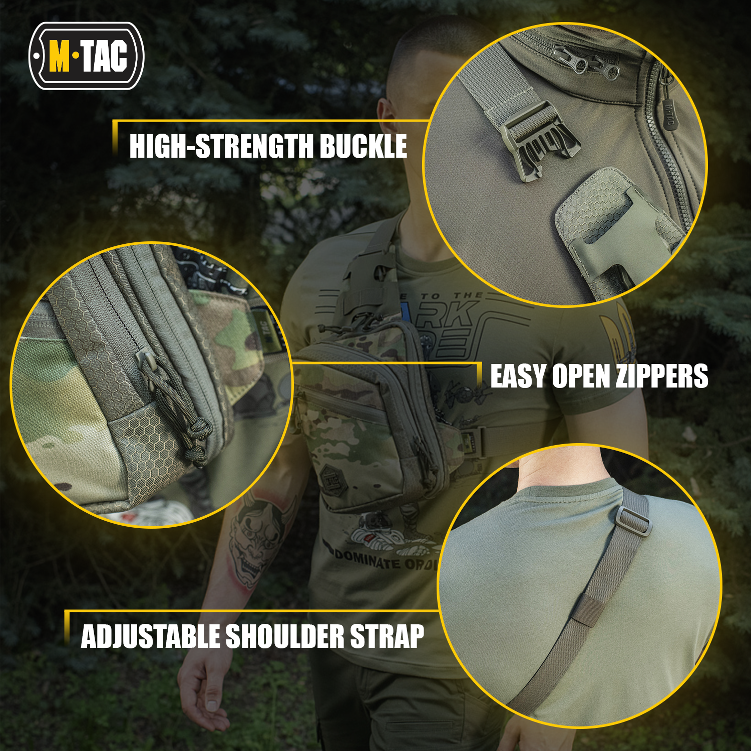 The front compartment is additionally equipped with organizers and a mesh pocket for an EDC set. Due to its shape, the bag fits comfortably on the body and doesn't take up much space. This model combines a stylish appearance with wide functionality, which excellent complement your look.