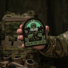The sticker depicts a determined Odin who has traded his traditional spear (Gungnir) for an AR-15 rifle. Dressed in modern combat gear and a helmet with night vision, he is ready to lead his warriors into the final battle. On Odin’s shoulders sit his loyal companions — the ravens Huginn (thought) and Muninn (memory), who fly across the 9 worlds each day and report everything they see to the Allfather.
