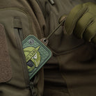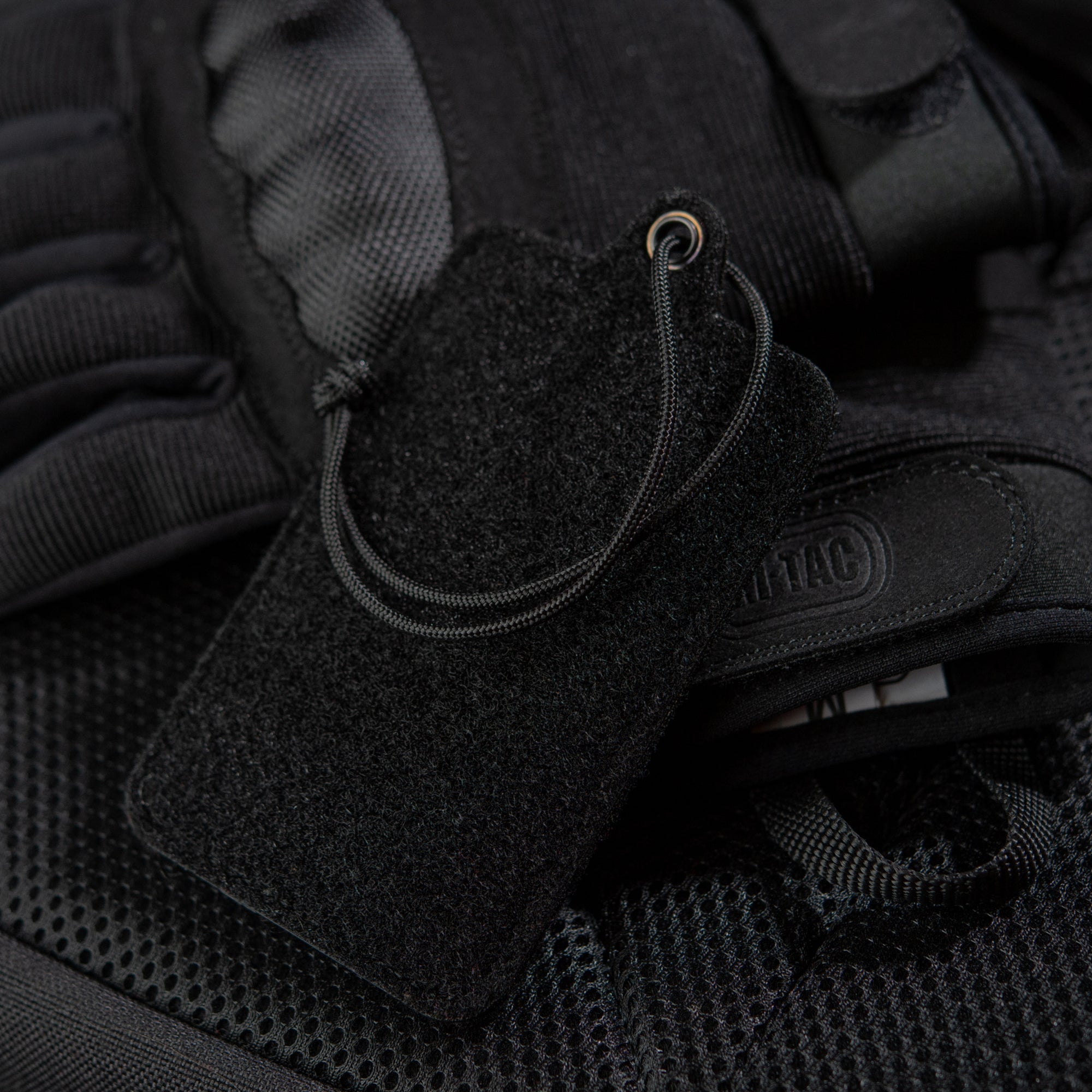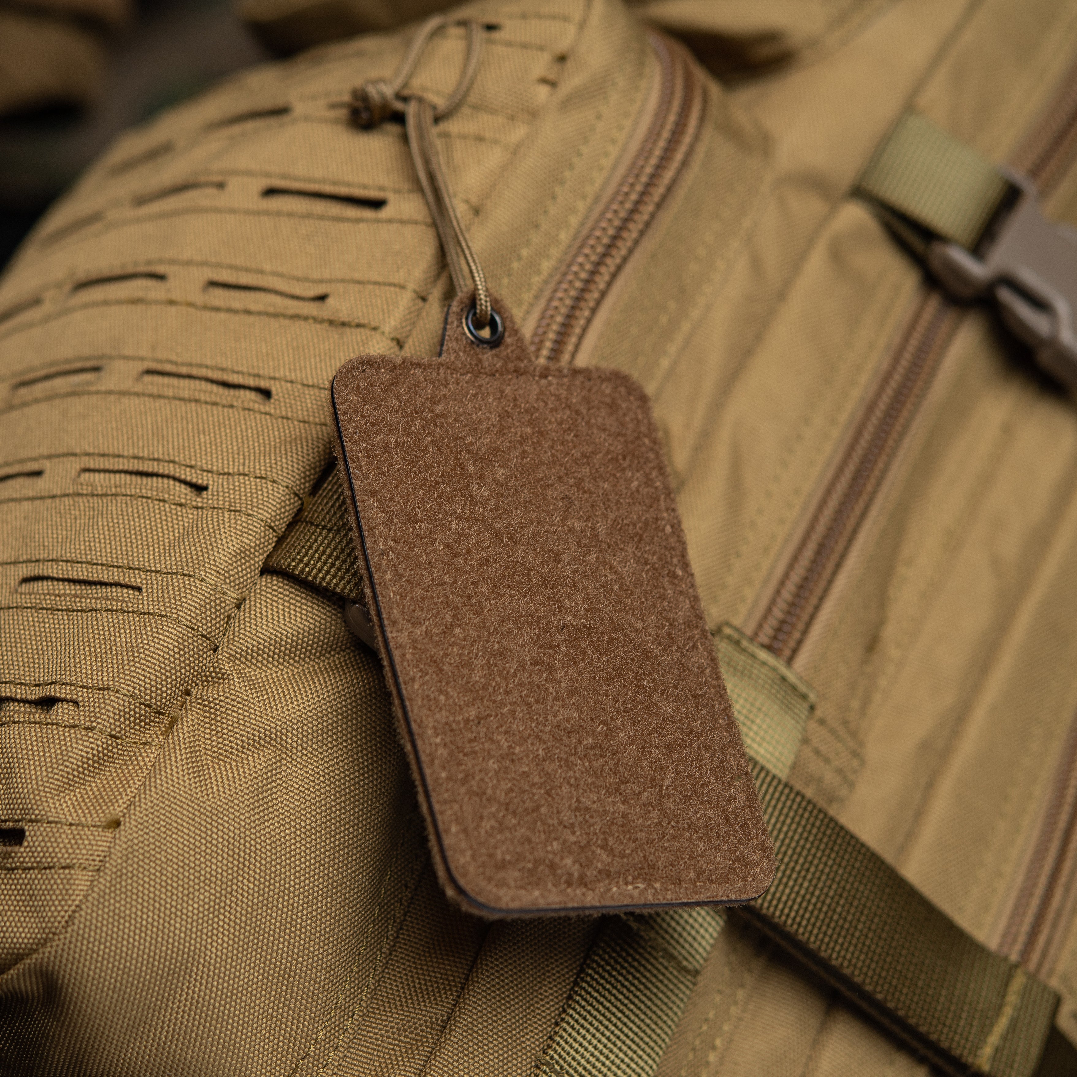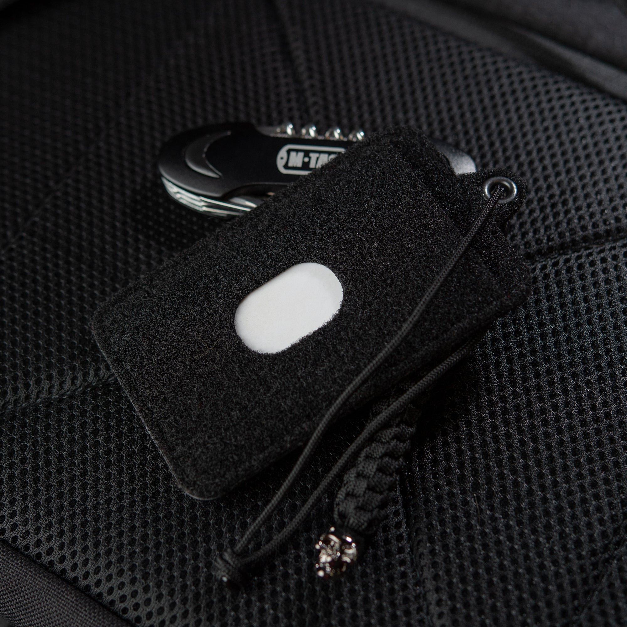 The M-Tac Tactical Badge Holder is a hanging patch display board with ID card pocket. Plastic base for firmness. Soft loop panels on both sides for patches and identifiers. Metal eyelet with thin paracord, about 5.9 inches long. Pocket for a key card or travel card.