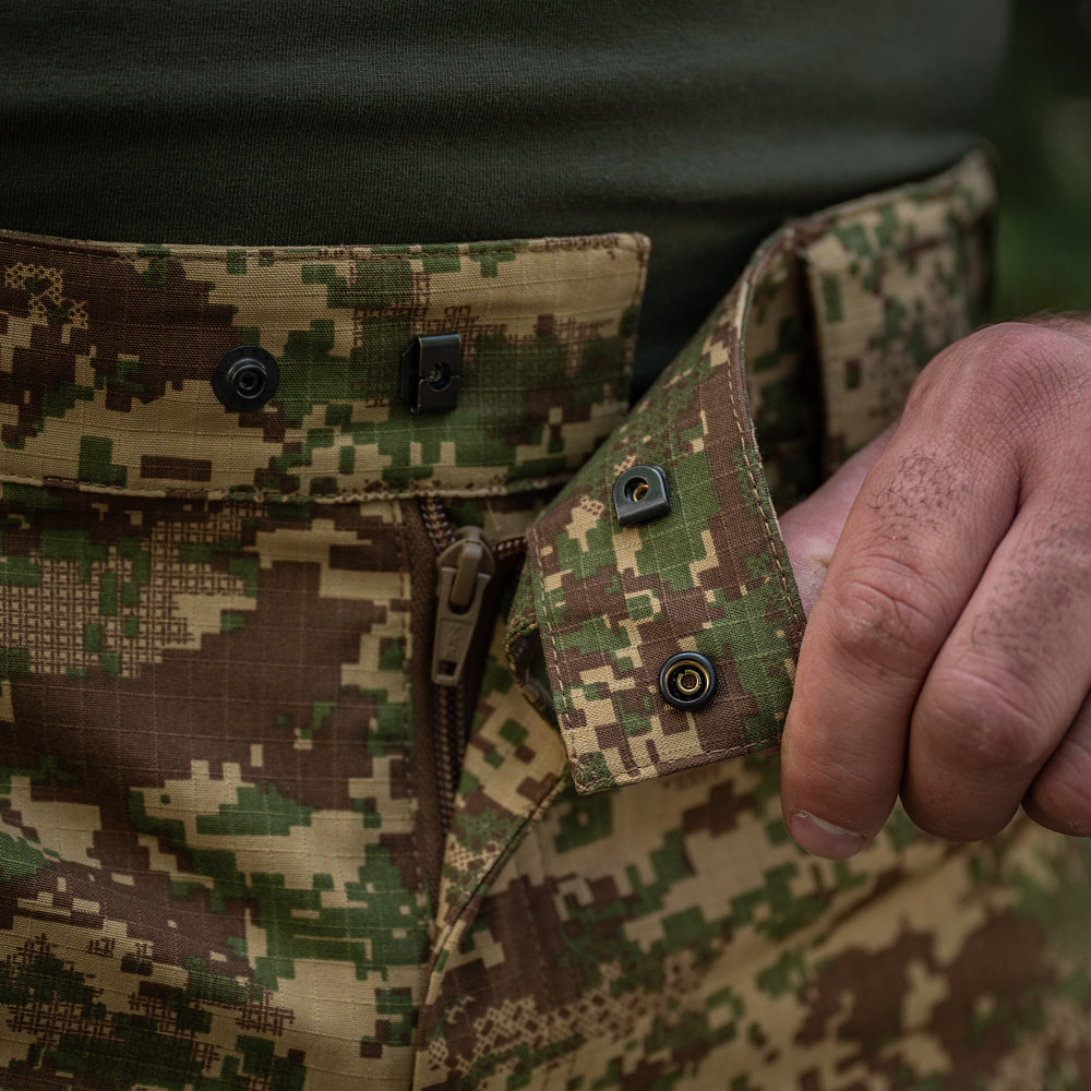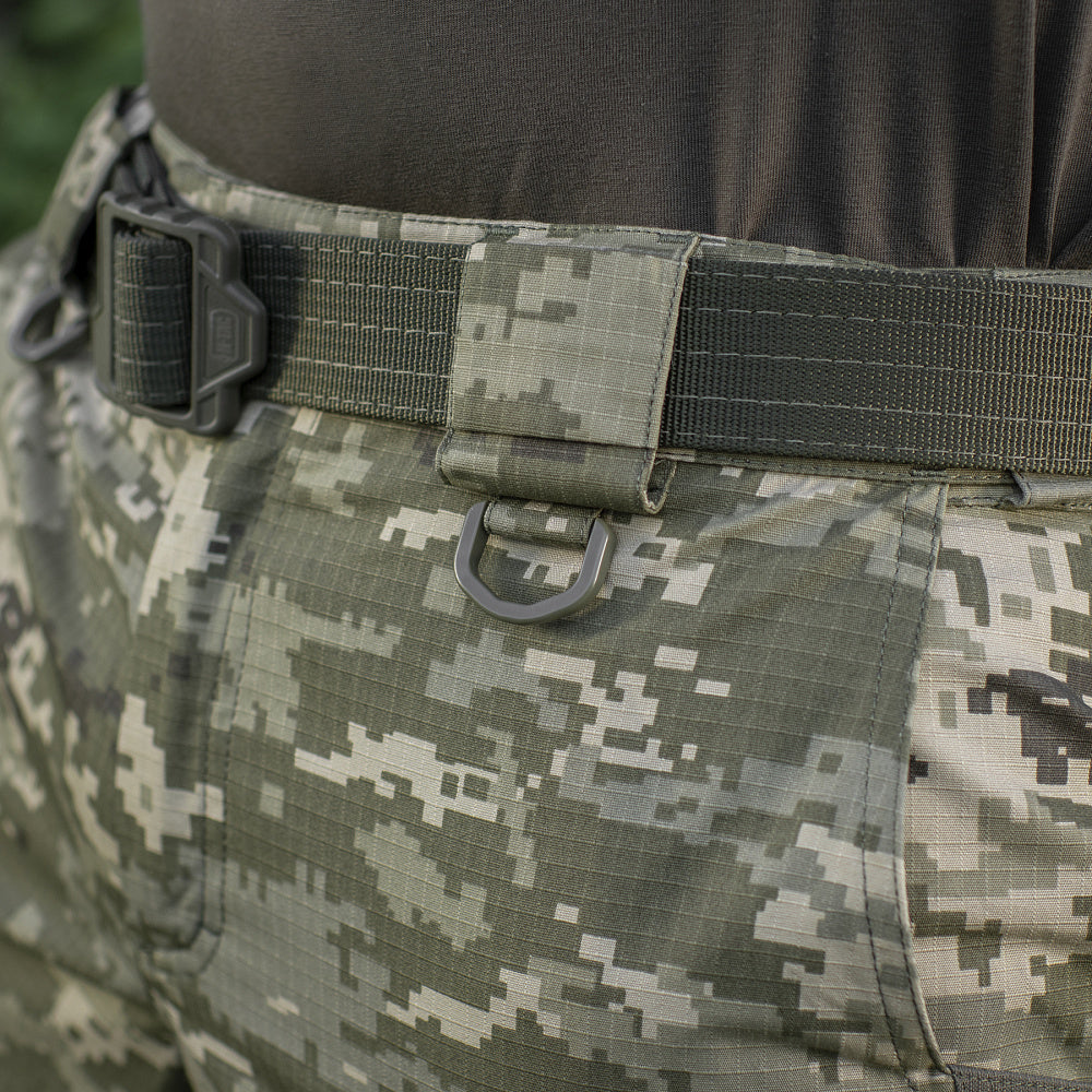 These shorts come with a comfortable elastic "tunnel" waistband that allows for easy adjustment and are compatible with belts up to 5.5 cm wide. Below the waistband at the front, two D-rings are sewn in for attaching various gear.