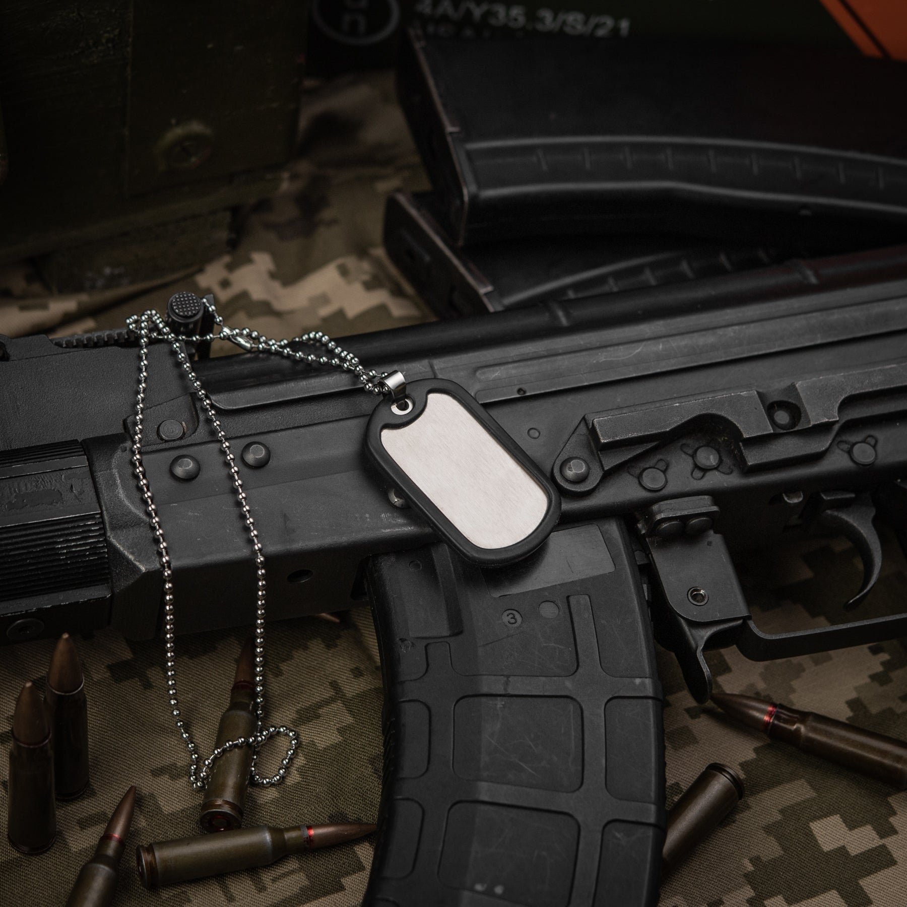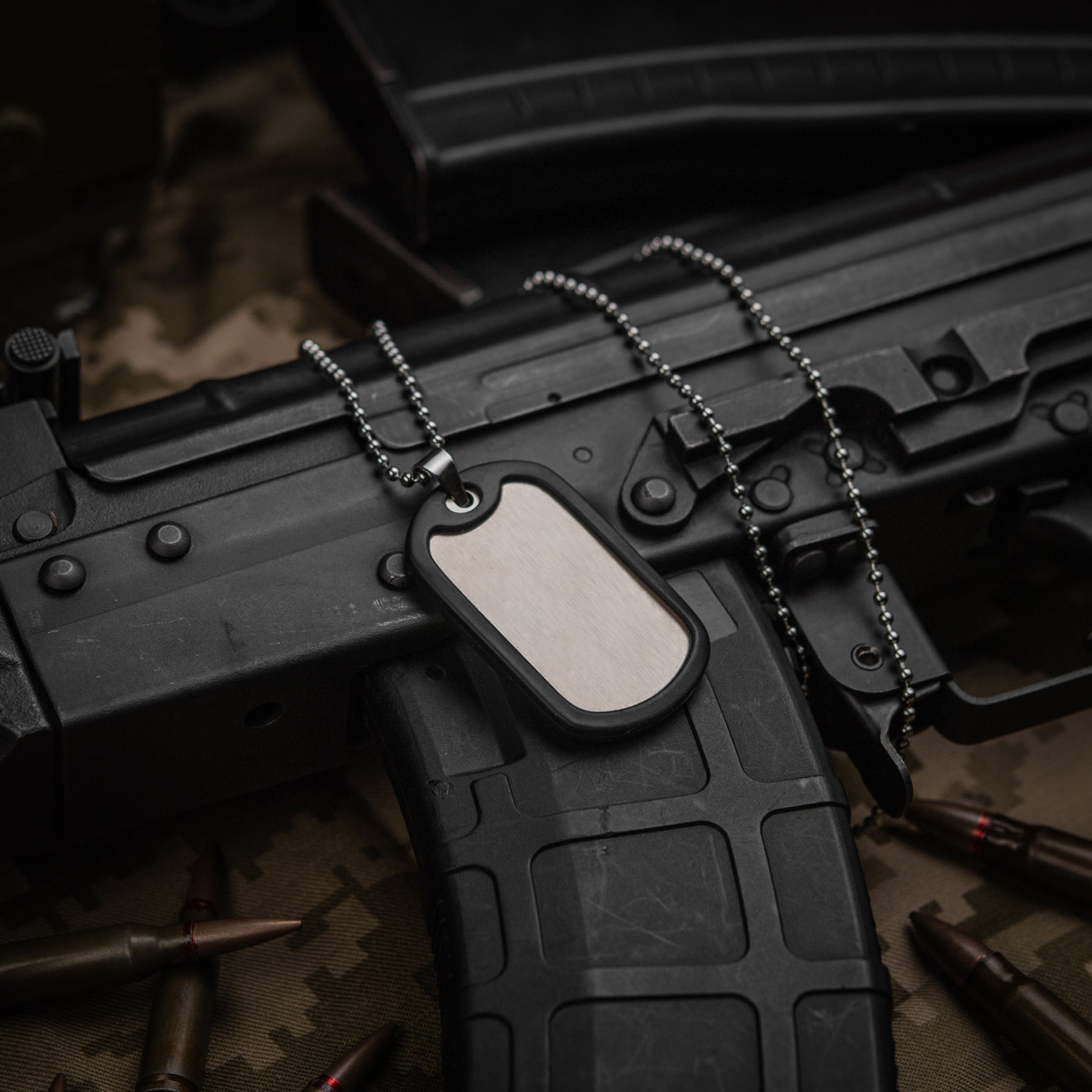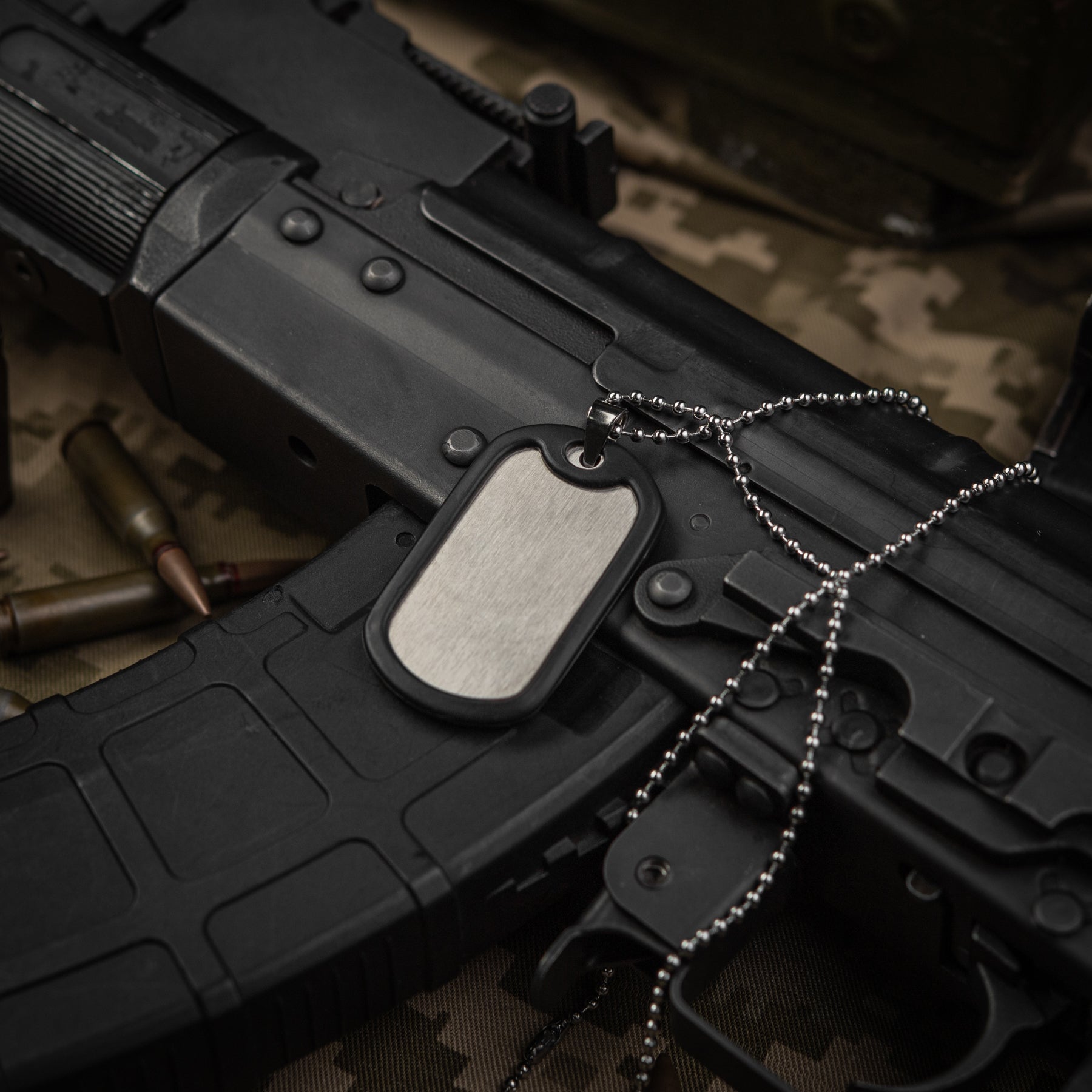 A blank military tag is designed for the identification of casualties, so all servicemen must carry it with them. The order for filling out the American army badge is as follows: Surname, First Name and Initial; Social Security Number; Blood Type and Rh Factor(only indicate positive Rh factor as «POS");Religion (Orthodox, Protestant, Baptist, Catholic, Hebrew, No Preference, Atheist). In the U.S. Marine Corps, the modern identification badge includes the following information:1. First line: Surname 2. Second line: First name and initials 3. Third line: Personal number and blood type 4. Fourth line: "USMC" alongside the gas mask size number 5. Fifth line: ReligionU.S. Marines may have a personal number consisting of 5, 6, or even 7 digits. The available gas mask sizes are XS, S, M, L, and XL.Complete set:- token - rubber band (silencers)- chain Additionally:The dog tag is delivered blank - without any inscriptions. *Laser engraving only – this pendant is not suitable for other marking methods.