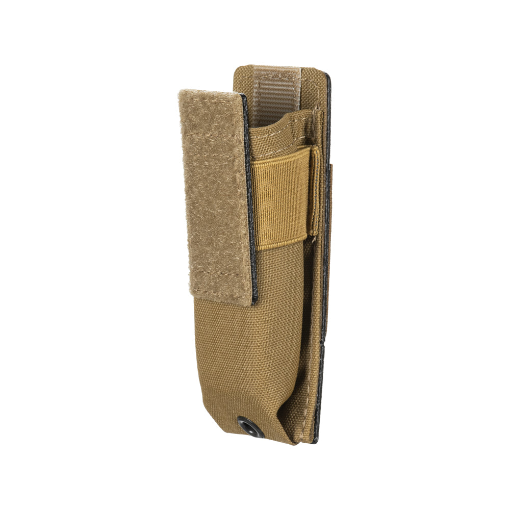 Made from Cordura 500D, it provides excellent resistance to abrasion and heavy loads. The front features an elastic adjustment cord that allows you to tighten the pouch to fit the magazine or multitool securely. The adjustable VELCRO® Brand-closure flap lets you set the height to accommodate different item sizes, while the drainage grommet at the bottom prevents sand, dirt, and moisture buildup.